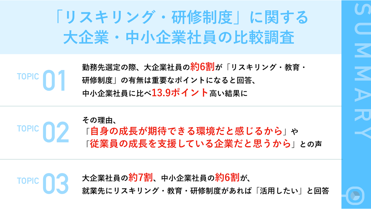 調査概要:「リスキリング・研修制度」に関する大企業・中小企業社員の比較調査