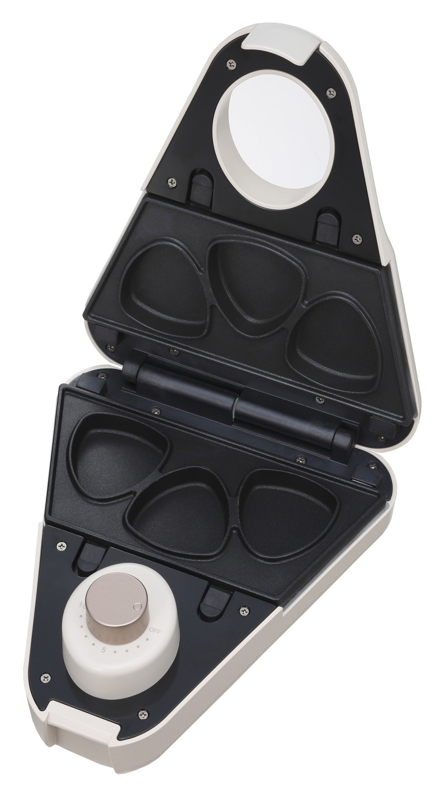「1枚焼ホットサンドメーカー BISAND(バイサンド)」は、通常食パン2枚を必要とするホットサンドを1枚の食パンで仕上げることができるホットサンドメーカーです。具材がたっぷり入る深みのあるくぼみにお好みの食材を詰めて食パン1枚で食べ応えのあるサンドが完成します。朝食やスナック、小腹が空いた時にうれしいサイズです。また、食パンの置く向きで三角型と四角型の2通りの仕上がりが楽しめるのも特徴です。