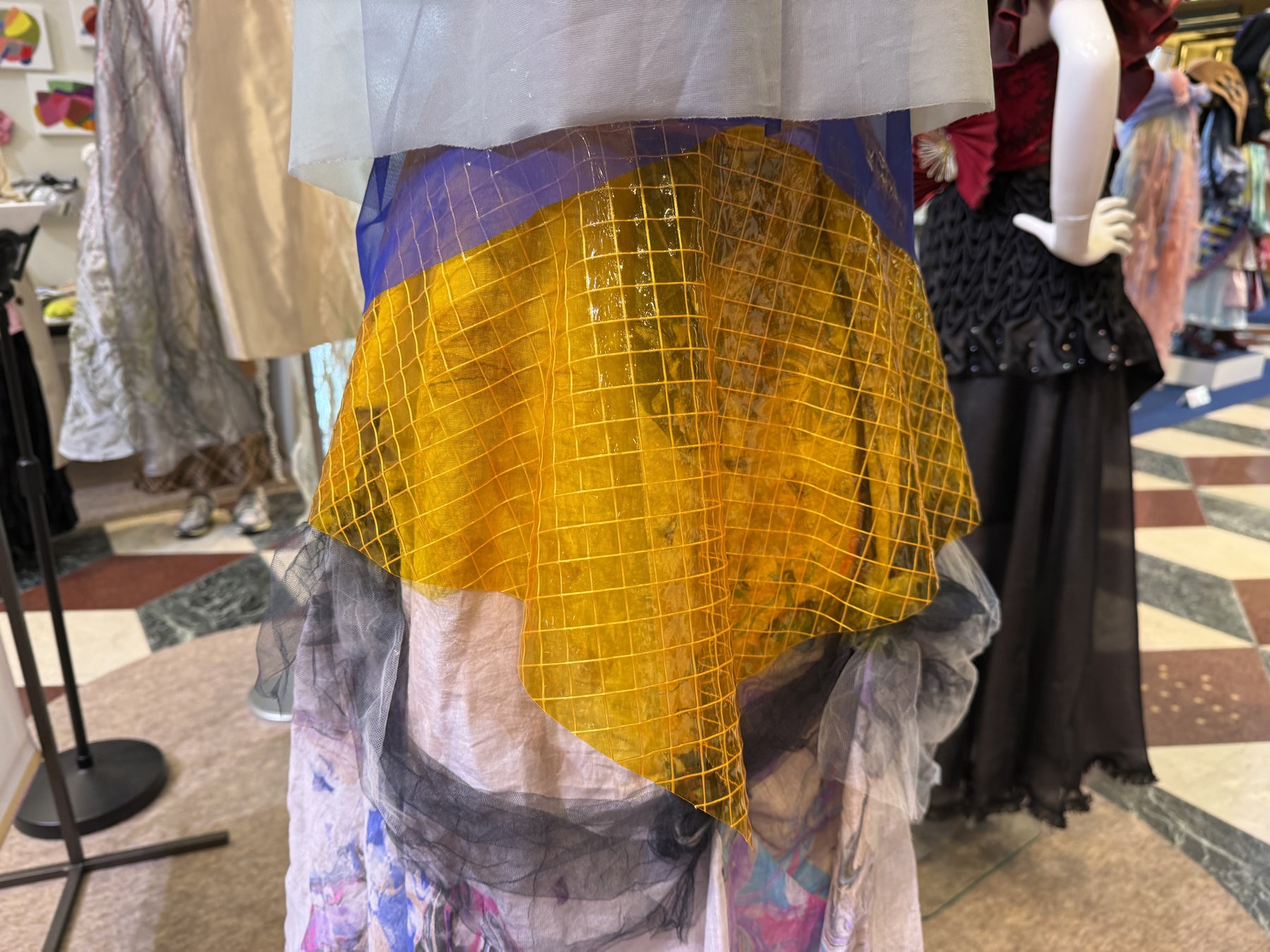 その先駆けとして、2025年2月にはテント端材を使用した衣装作品が「香蘭女子短期大学 卒業・修了制作展2025」で披露されています。