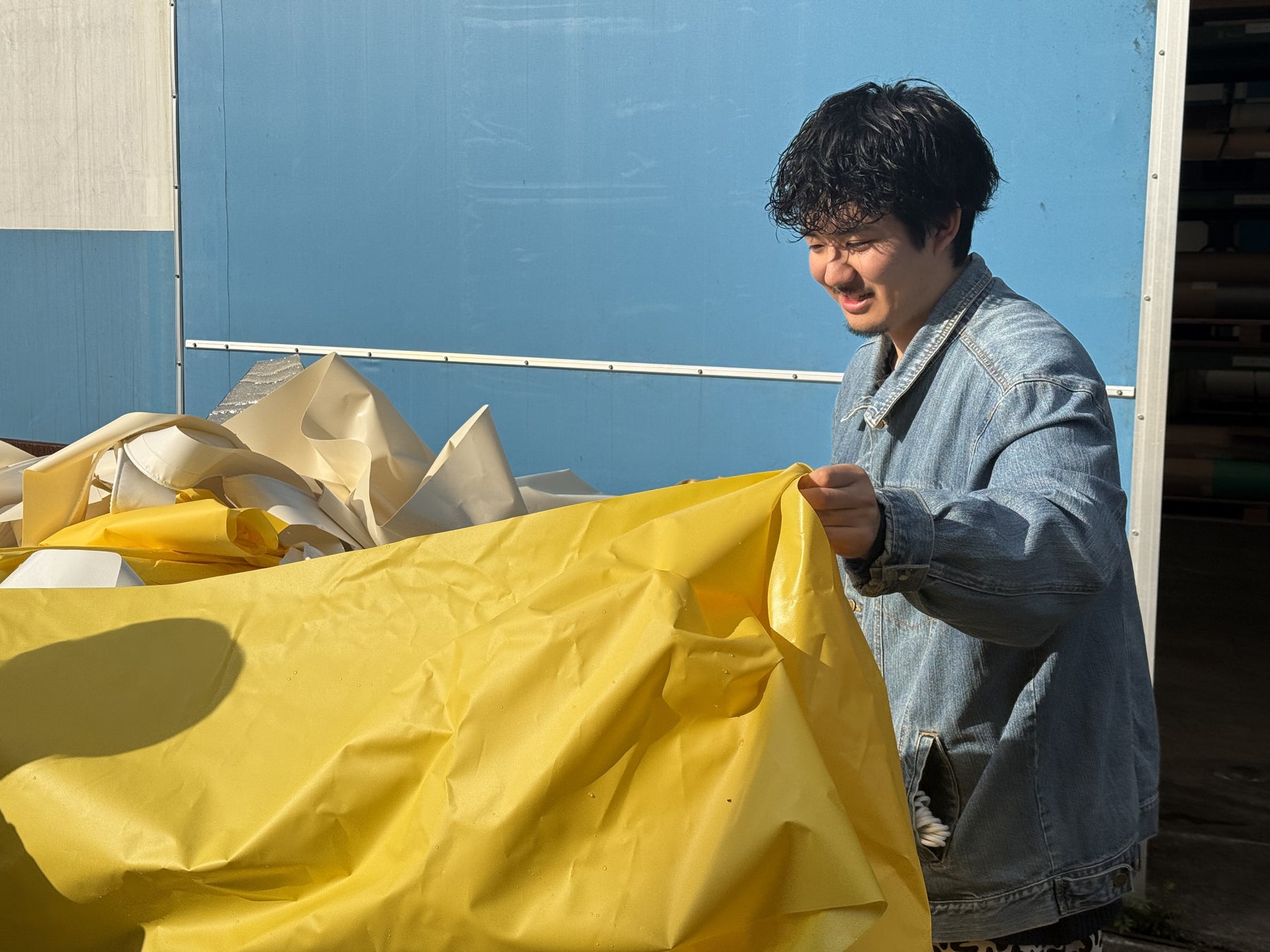 テント建築総合メーカーの山口産業が、異分野との協業でテント端材などのアップサイクルを推進し、廃棄物ゼロを目指す。