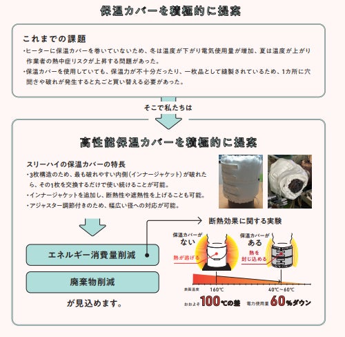 スリーハイの製品開発・提案を通じた気候変動への取り組みとして、高性能保温カバーの積極的な提案を行っています。