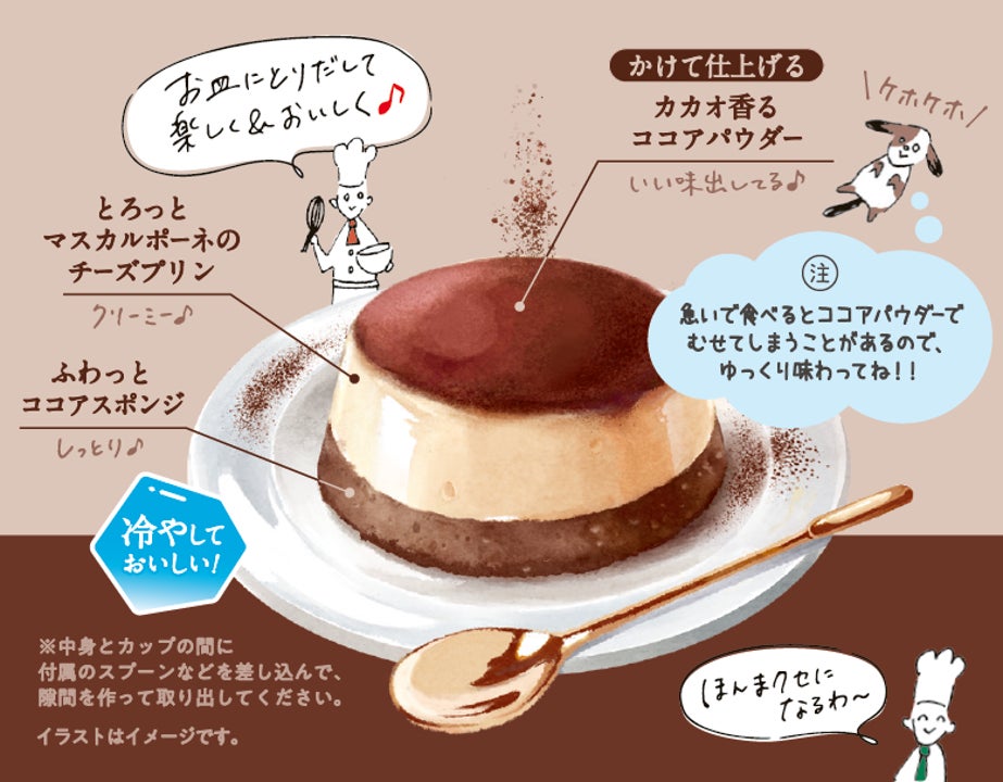 「ふわっ」とココアスポンジ層に、「とろっ」とクリーミーなマスカルポーネのチーズプリン層。