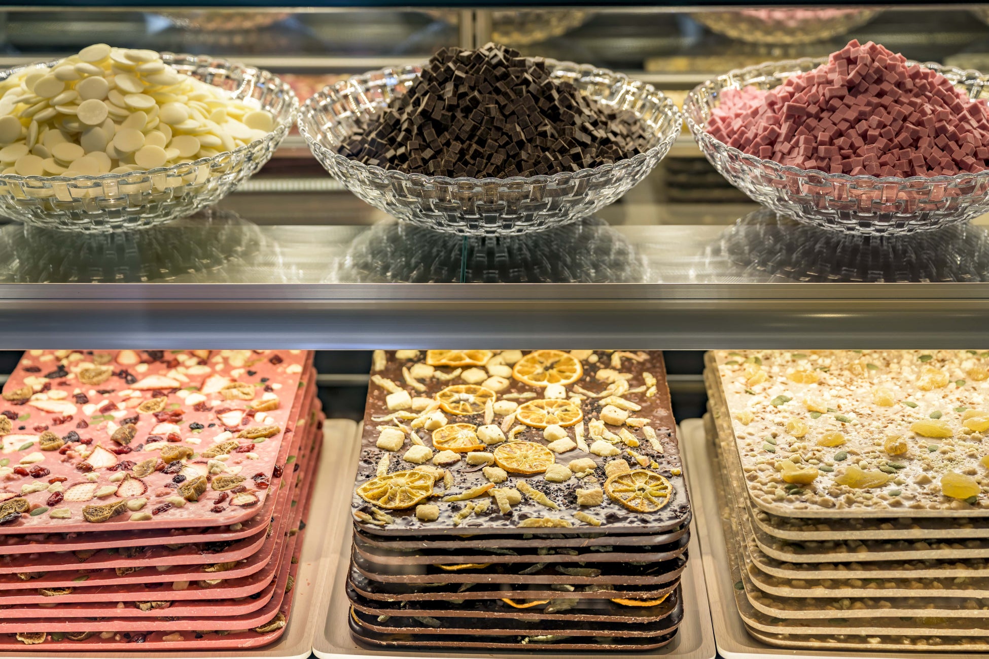食品工場で大量生産されている様子は、見るだけで心躍ります。お店ではまるで工場見学しているかのように、チョコレートが作られていく工程を見ることができます。