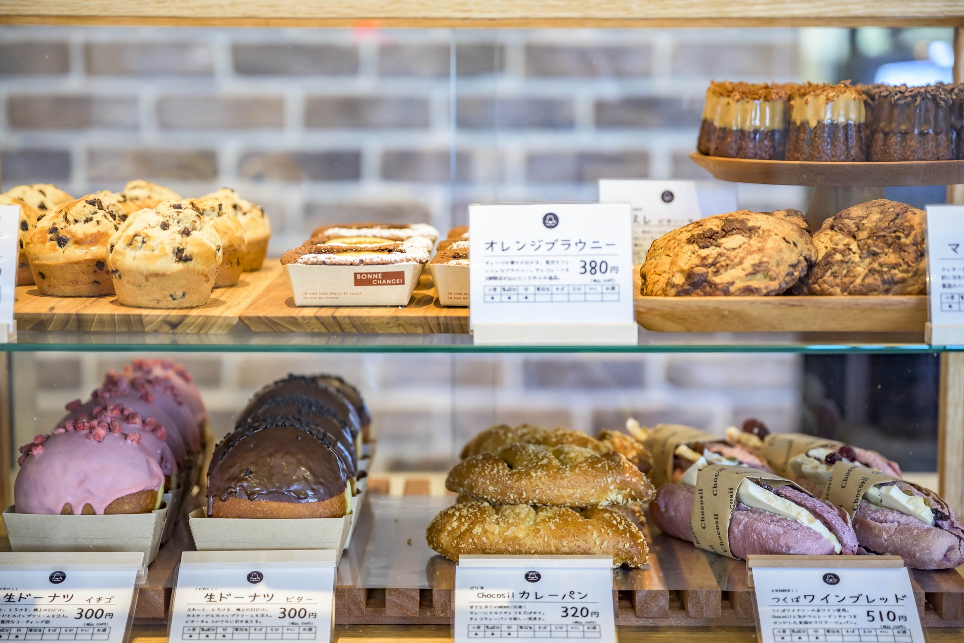 チョコレートメーカーが作るチョコレートがたっぷり入ったスコーンやクッキー、つくば市内のワイナリーで作られたワインを使用したワインブレッドなど、当店ならではの素材を使った商品をラインアップ。ドリンクと合わせてお楽しみください。