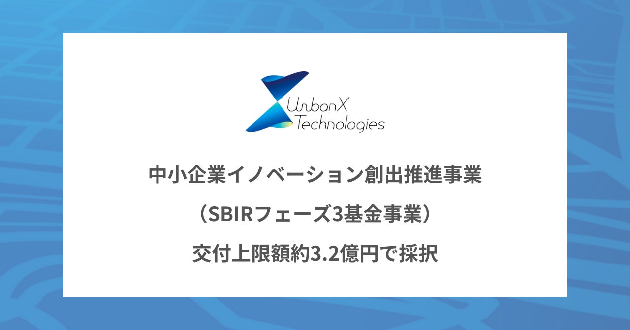 アーバンエックス、中小企業イノベーション創出推進事業(SBIRフェーズ3基金事業)に交付上限額約3.2億円で採択