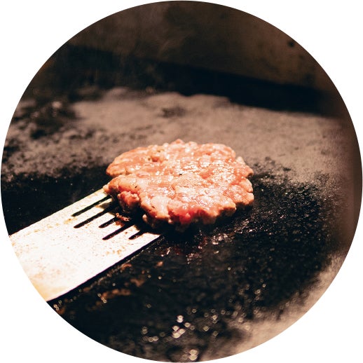 自慢のパティは和牛を中心に5種類の部位を独自ブレンドし、肉の食感を楽しんで頂くため粗挽きを使用しています。