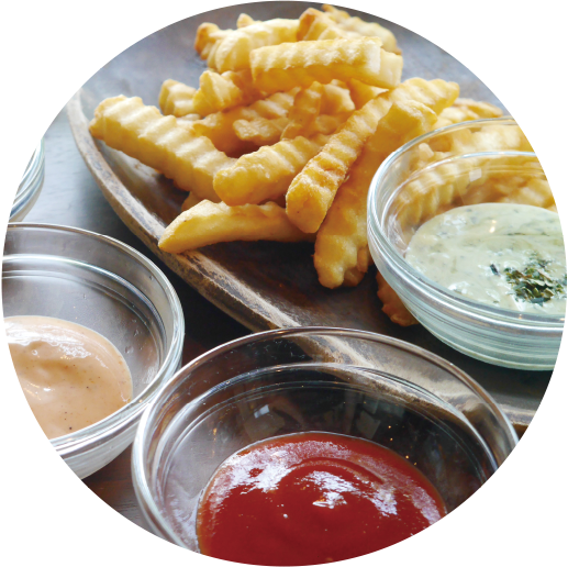 ハラペーニョガーリックやバジルマヨ、アボカドマヨなど、8種のディップからお好みで3種お選びいただけます。