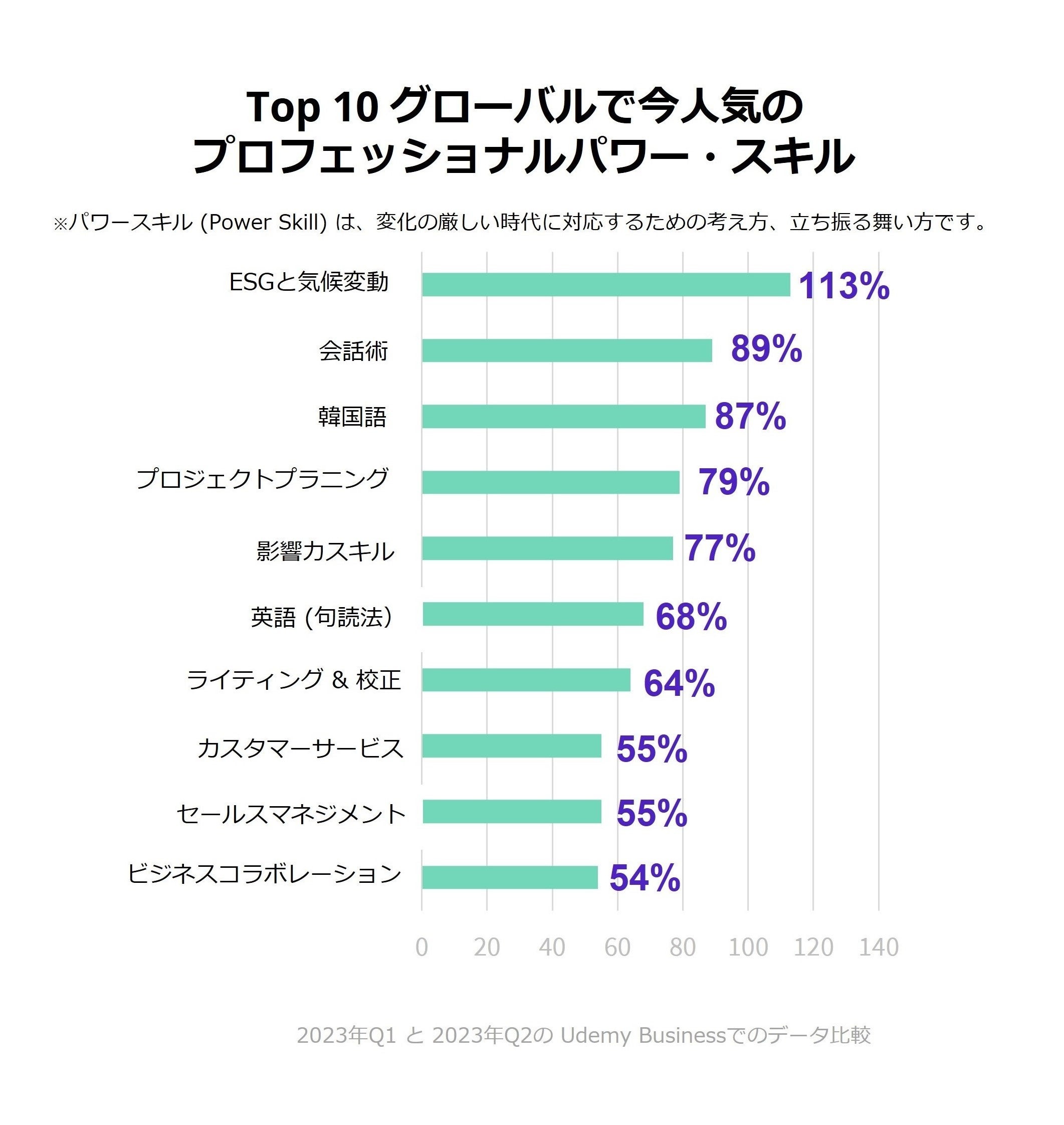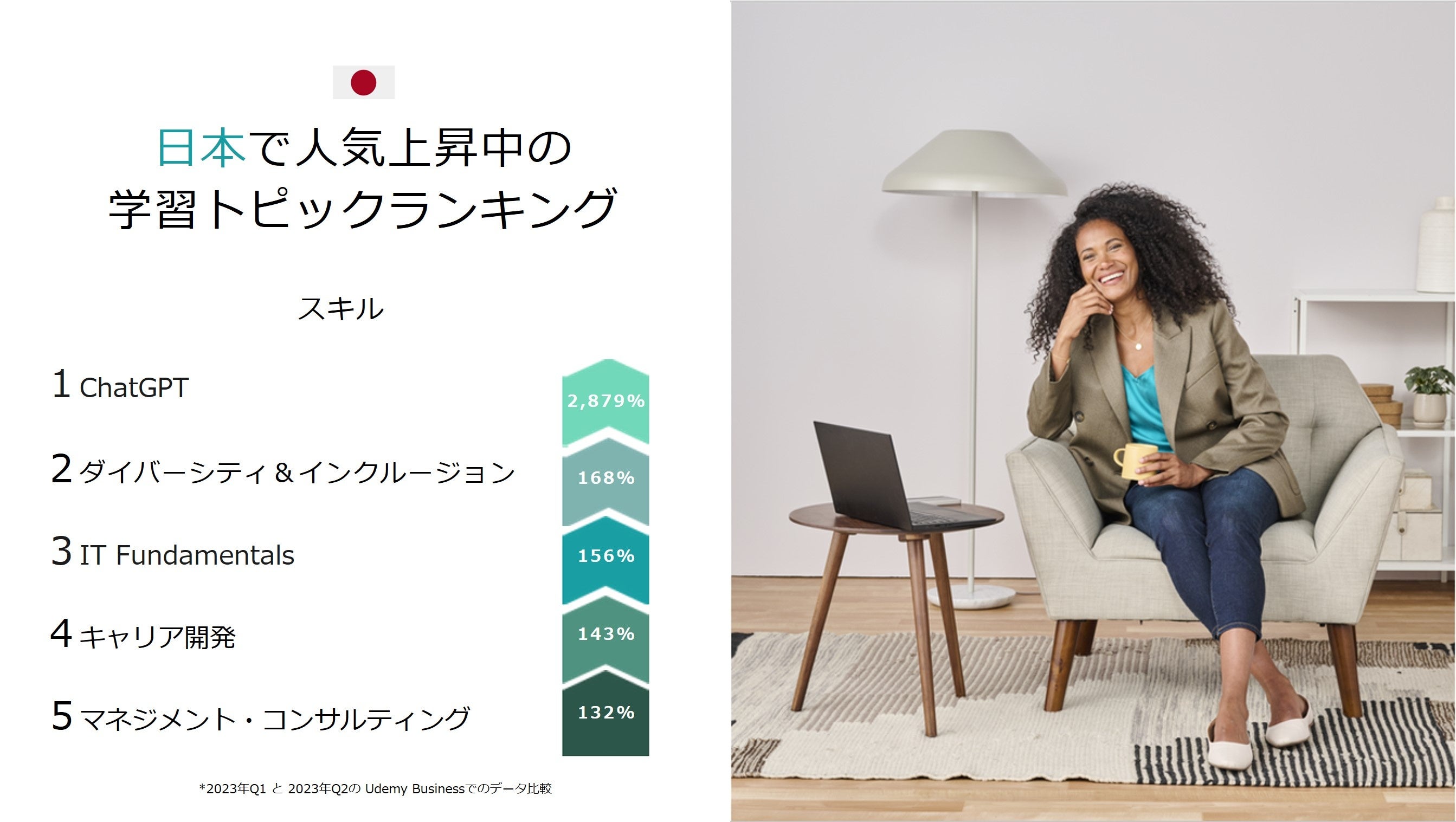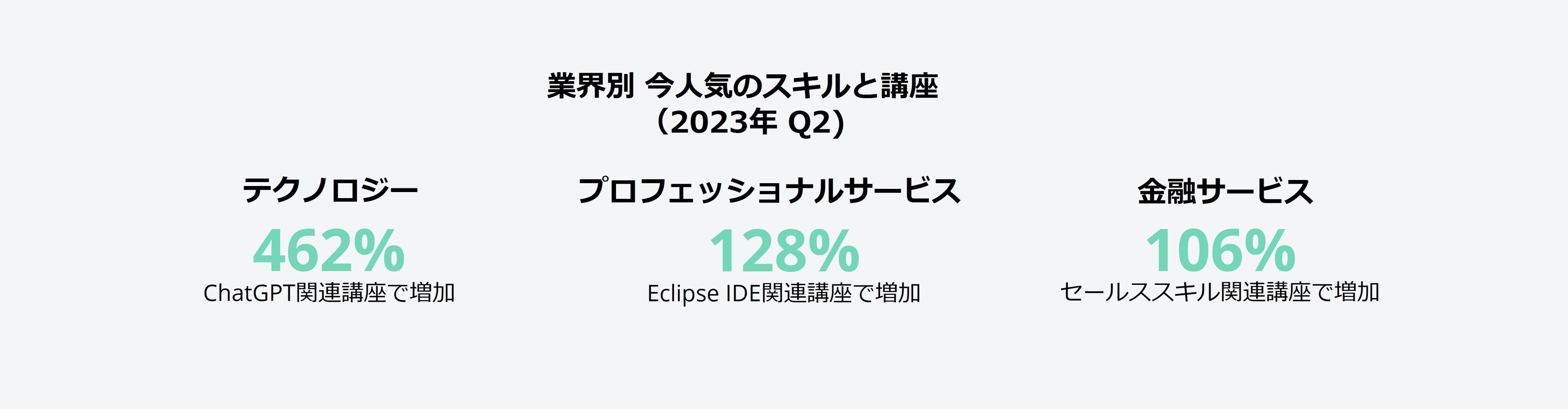オンライン学習を通じて人々の生活の向上を目指すUdemyは本日、「2023年第2四半期 ワークプレイス・ラーニングインデックス」を発表し、テクノロジースキルとプロフェッショナルパワースキルで日本および世界中の高い専門知識を有した学習者が最も学んでいるスキルを明らかにしました。
