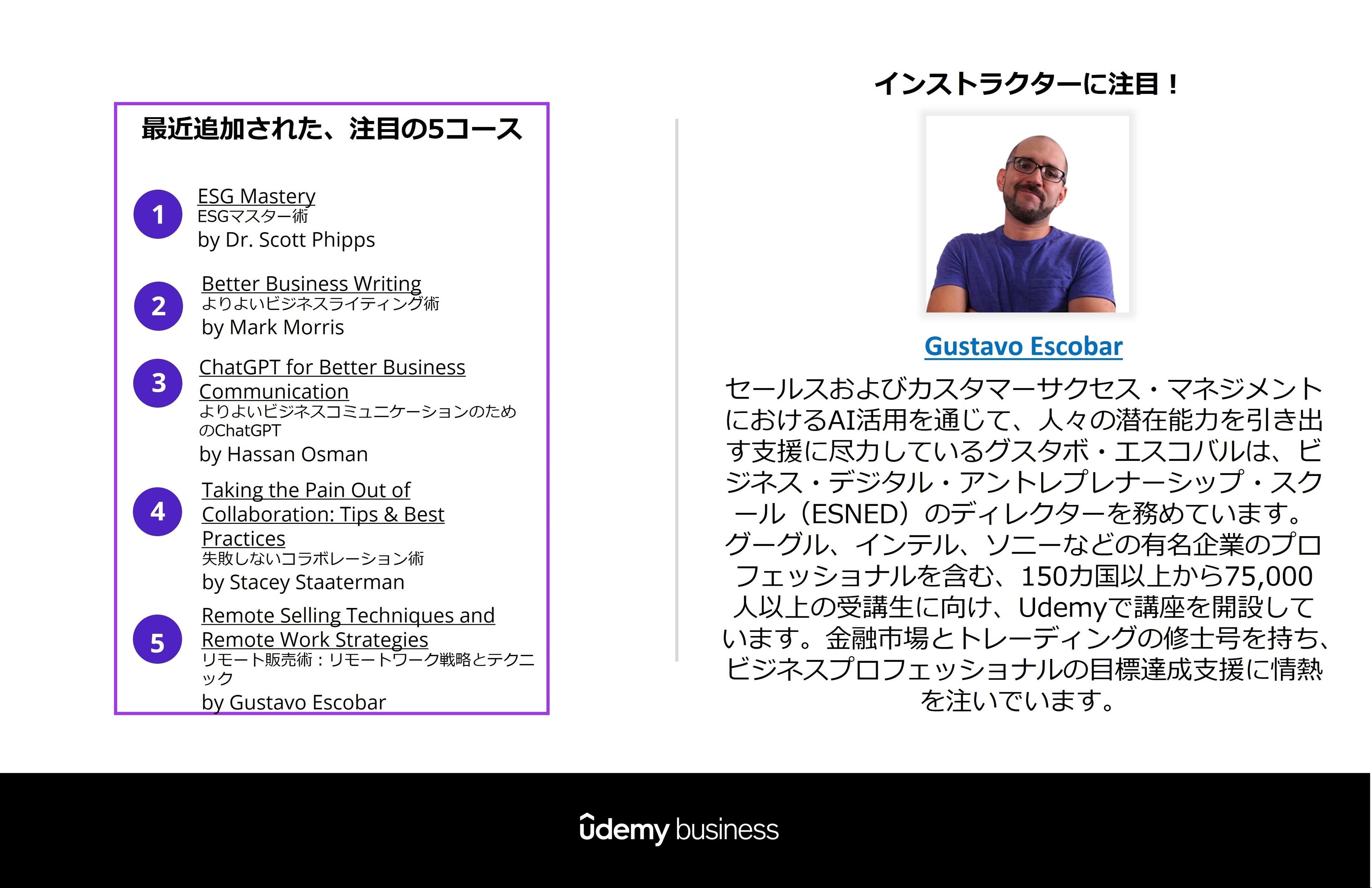 日本で需要が高いトップ5のスキルに関連する人気講座をご紹介します。