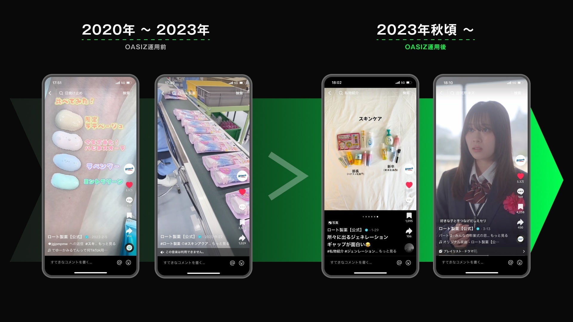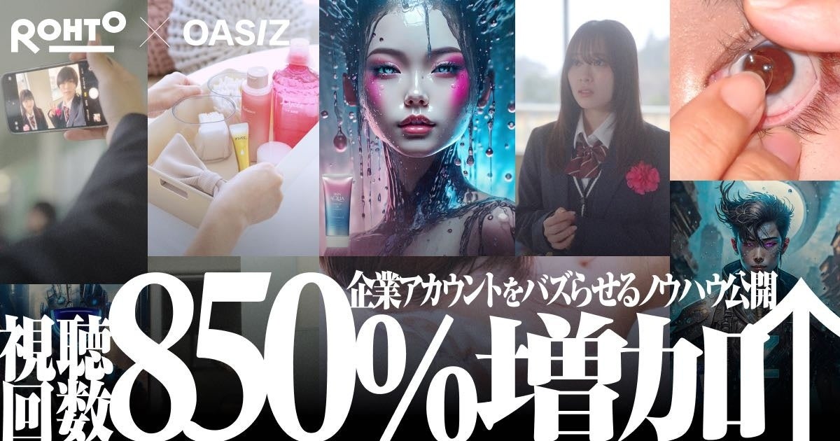 TikTokなどショート動画に特化したネクストジェネレーションカンパニー、株式会社OASIZ(本社:東京都渋谷区 / 代表取締役社長:江藤優 / 以下、OASIZ)は、2023年10月より支援を開始したロート製薬のTikTokアカウントの総視聴回数が支援開始前と比較して850%増加したことをお知らせします。