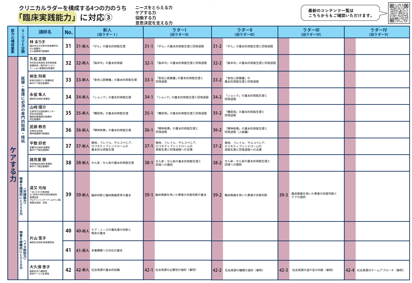 「S-QUEクリニカルラダー別研修」は、この新しい「看護実践能力習熟段階(ラダー)」に基づいて開発された研修プログラムです。