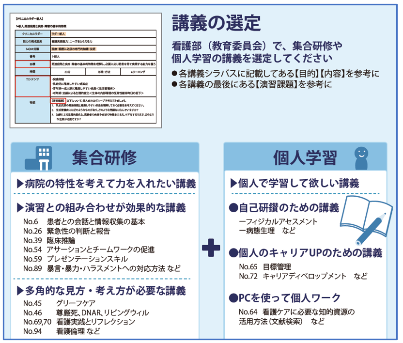 「クリニカルラダー別研修」の内容を丸ごと準備することにより、教育担当者の業務負担も大幅に軽減することが可能です。