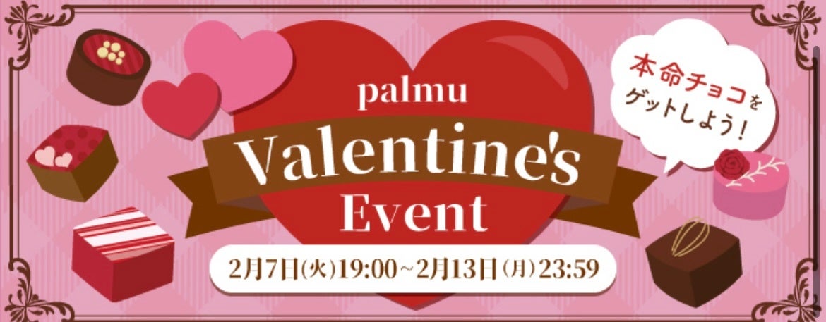 「palmuバレンタインイベント」は、ライブ配信アプリ「palmu」(パルム)において2023年2月7日(火)19:00から2月13日(月)23:59の7日間にかけて開催されたアプリ内イベント。