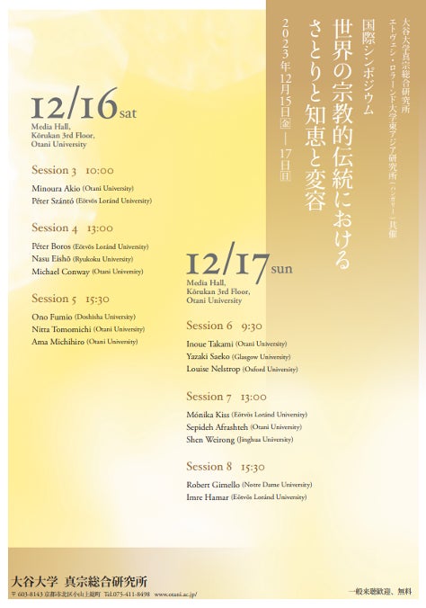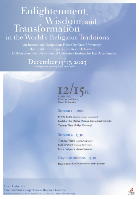 大谷大学 真宗総合研究所 国際シンポジウム『世界の宗教的伝統におけるさとりと知恵と変容』2023年12月15日(金)~17日(日)開催