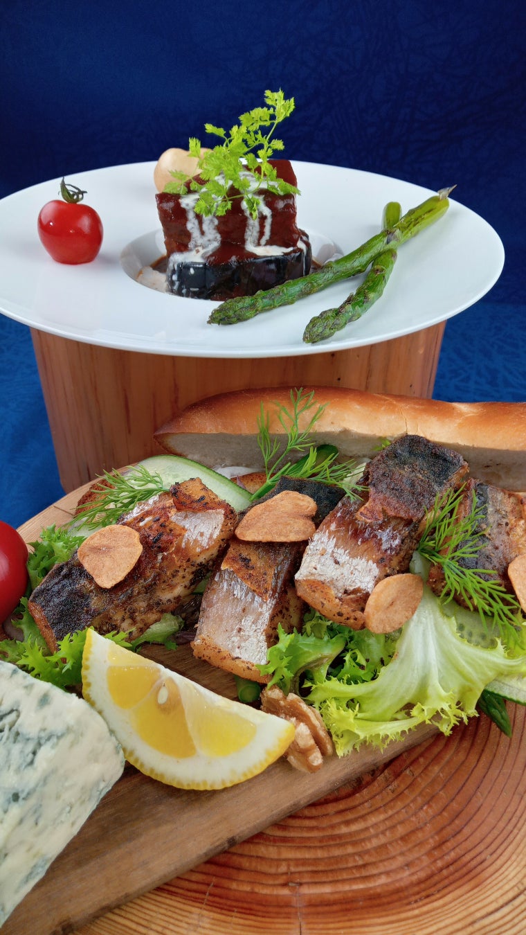 白ワインには数種類のスパイスをまぶしカリッと焼き上げた鯖のサンドイッチはいかがですか?白ワインの爽やかな酸味が絶妙にマッチした鯖サンドお試しください。