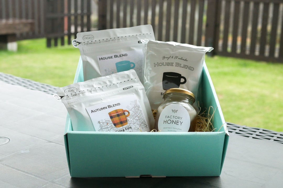 オータムブレンド(100g)、ハウスブレンド(100g)、Factory Honey(230g)、コーヒーバッグ(5個)