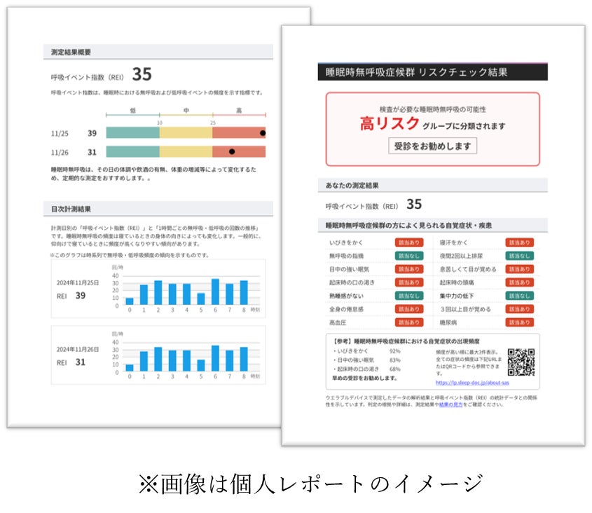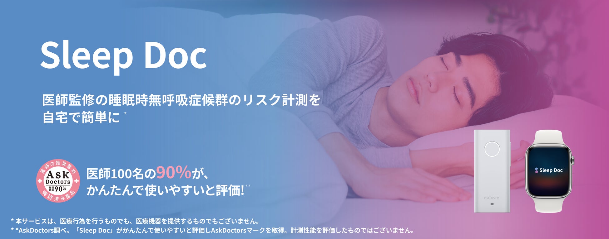 エムスリーとソニーグループの合弁会社であるサプリム (本社:東京都港区、代表取締役:富山泰司) が提供する睡眠時無呼吸症候群リスク計測サービス「Sleep Doc」(URL: https://sleep-doc.jp/ )は新たに個人向けサービスを提供開始すると共に、測定デバイスのラインナップの拡充、2,800円(税込)で計測できる廉価プランの追加、および医療機関を受診される際に医療従事者の方々に提出いただく資料(医師の9割がわかりやすいと評価(※1))をレポートに追加するなどのリニューアルを行うことで、より多くの方々にとって使いやすいサービスを提供いたします。