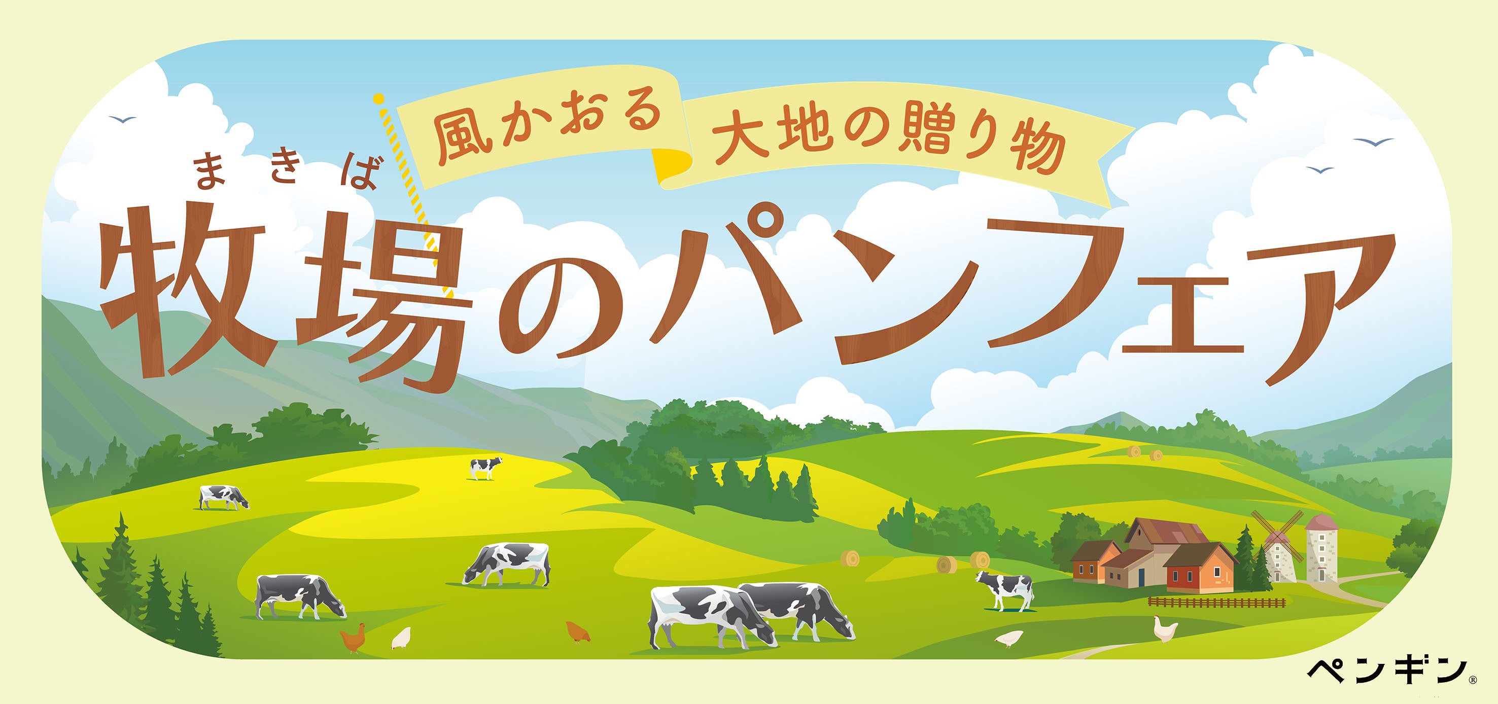 北海道で生まれたペンギンベーカリーならではの、牛乳やバター、チーズをつかった自慢の商品をラインナップ。緑豊かな牧場へのお出かけ気分で!ペンギンベーカリーの「牧場のパンフェア」へ、ぜひお越しください!