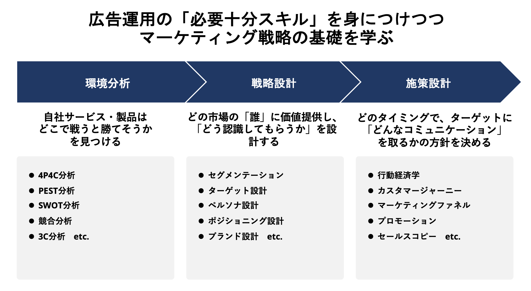 上記を同時に学ぶことで、実務での対応力を高めることができます。オンラインやオフラインを問わず、全体的な俯瞰力を身につけ、戦略の立案や実行に自信を持つ人材を目指せます。