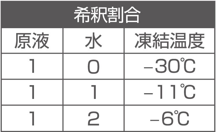 薄めずそのまま使用できますが、表を参考に希釈しても使用可能です。