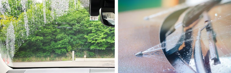 突然の雨でも、ウォッシャーするだけで洗浄+撥水効果を同時に叶えます。