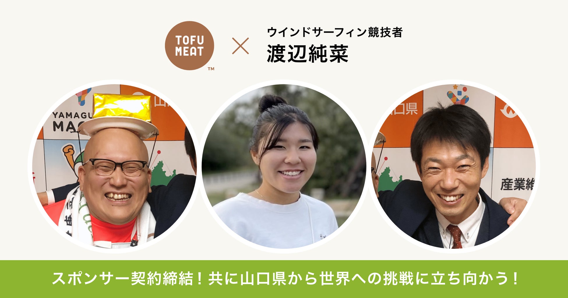 豆腐を原料とする植物由来100%の新食材「TOFU MEAT(トーフミート)」を開発・製造する株式会社トーフミート(本社:山口県宇部市、代表取締役社長:村上 英雄/以下「トーフミート」)は、ウインドサーフィンの渡辺純菜選手とスポンサー契約を締結したことをお知らせします。