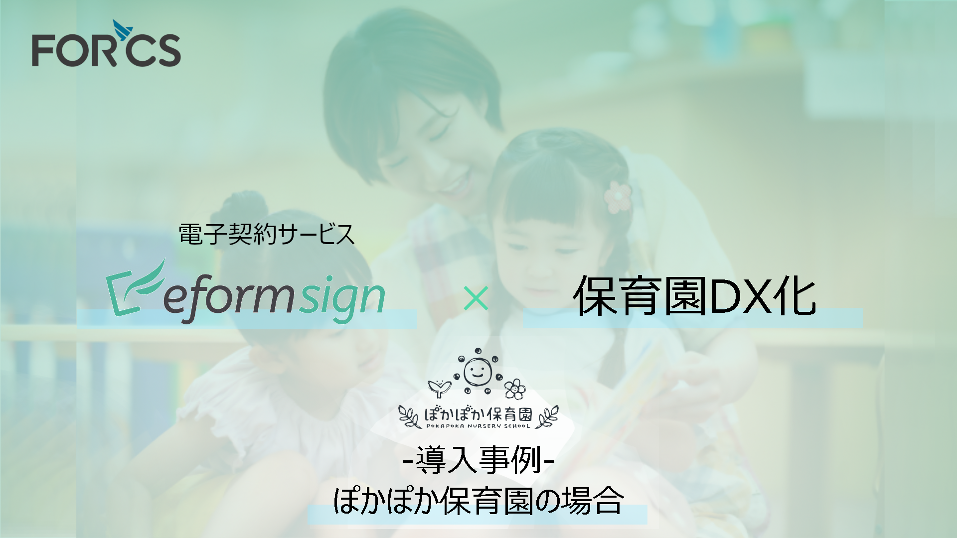 【東京都八王子市・2023/8/9】 - 保育園の業務効率化を支える電子契約サービス「eformsign」が、ぽかぽか保育園に導入され、新たに運用が開始されました。保育園の業務プロセスが効率化された一例として、その導入事例をご紹介します。