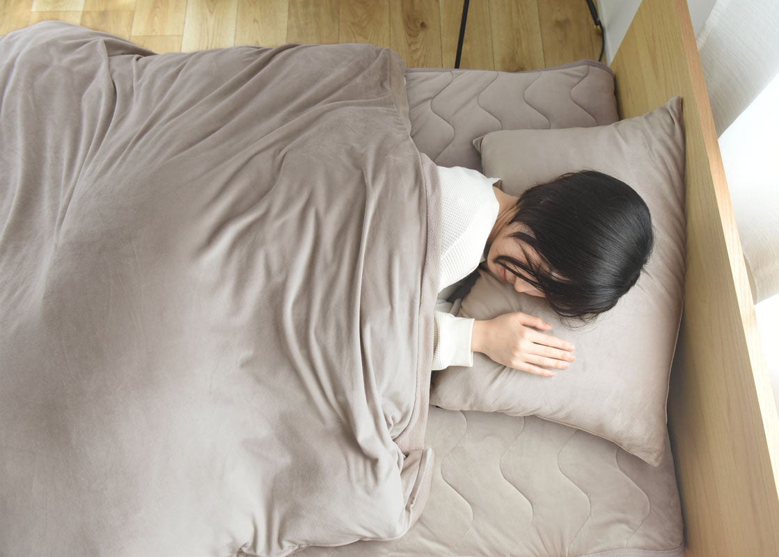 朝の毛布ズレ落ち問題に。毛布と羽毛布団が一体化すれば解決