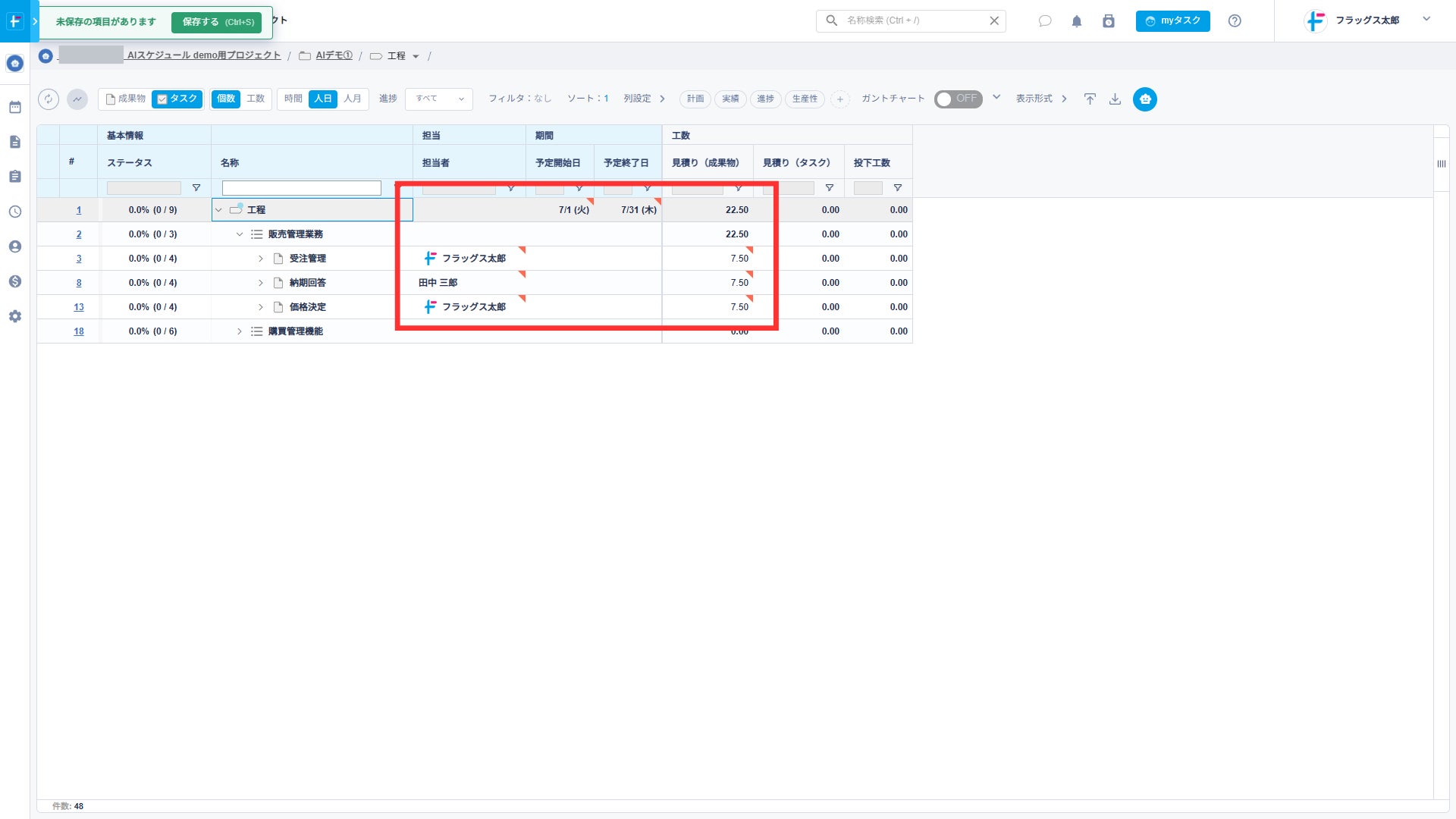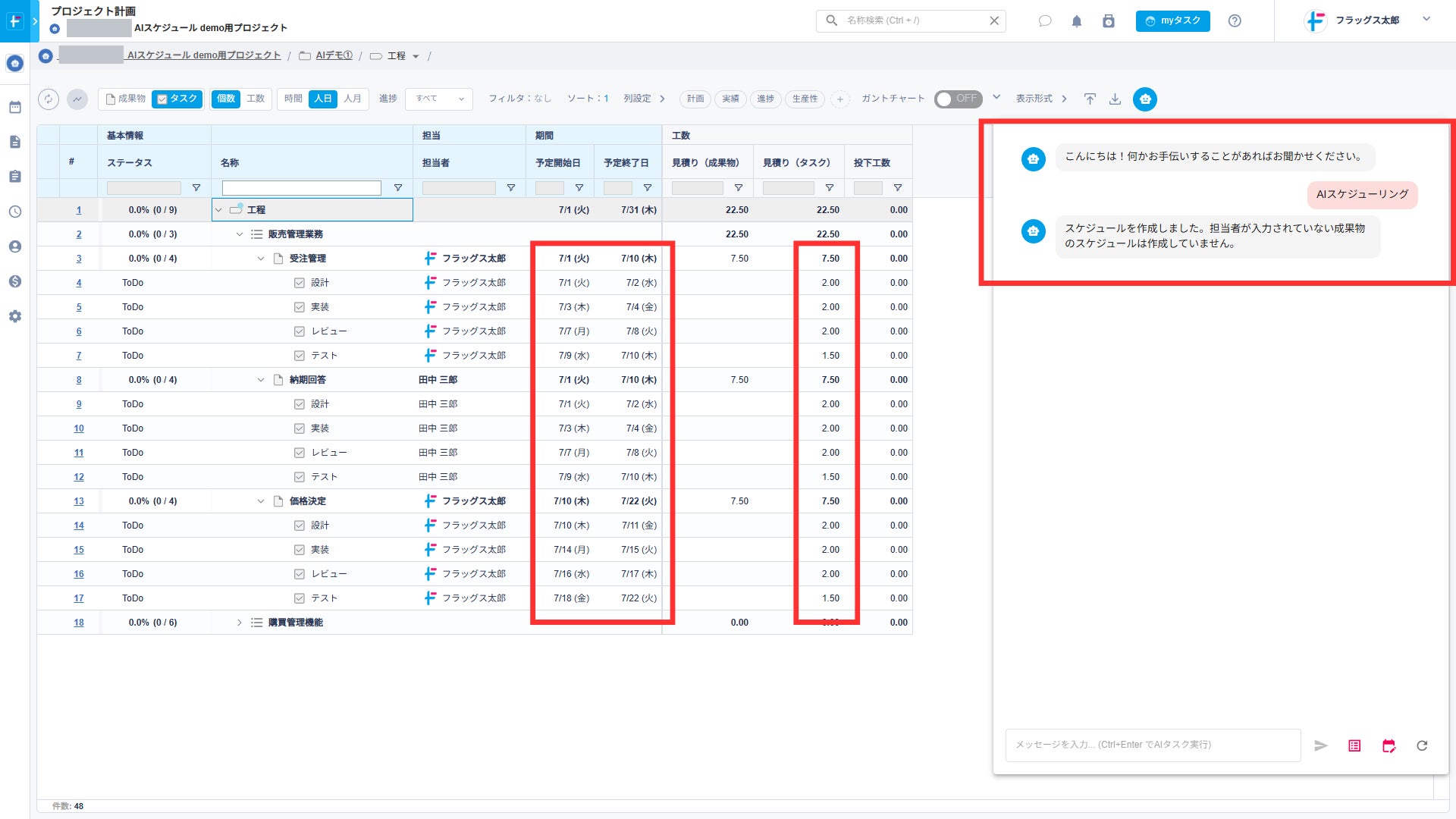 2. 記入された情報をもとに、AI が自動でタスク単位の見積りを入力します