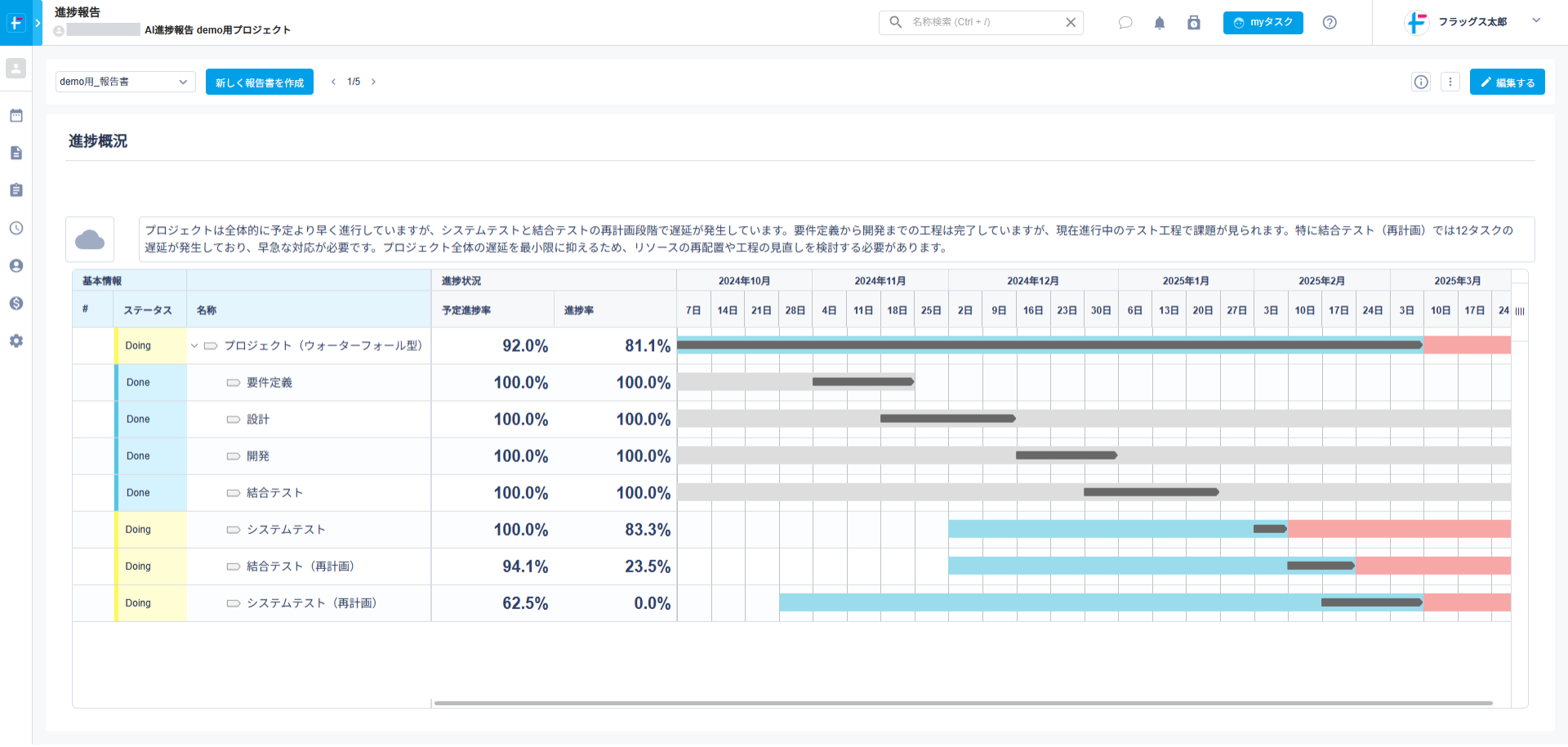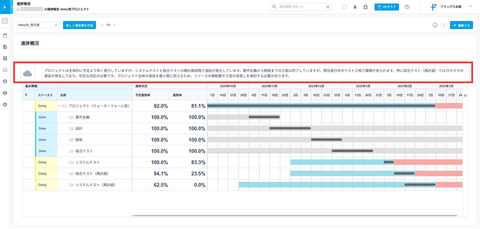 1️⃣「AI進捗報告書作成機能」β版 :リアルタイムで客観的な進捗報告を自動生成