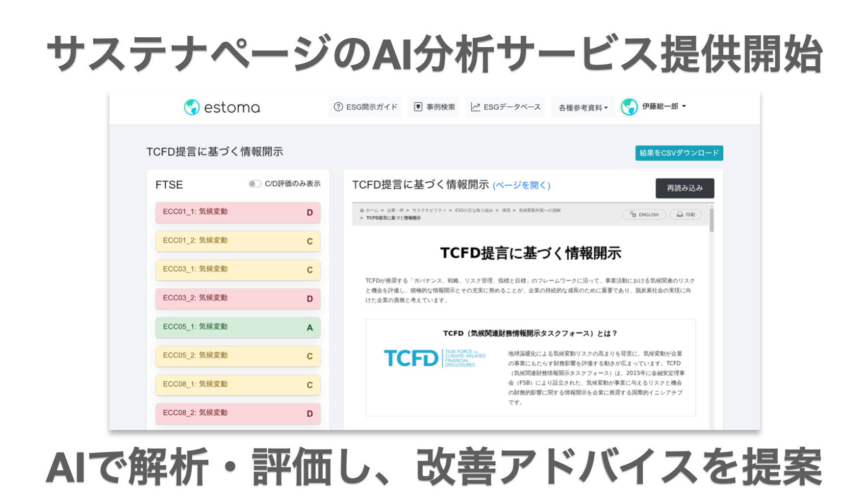 【ESG評価機関対応】世界初のESG情報統合管理クラウドestoma 自社のサステナページをAI分析・改善提案を行うサービスを提供開始