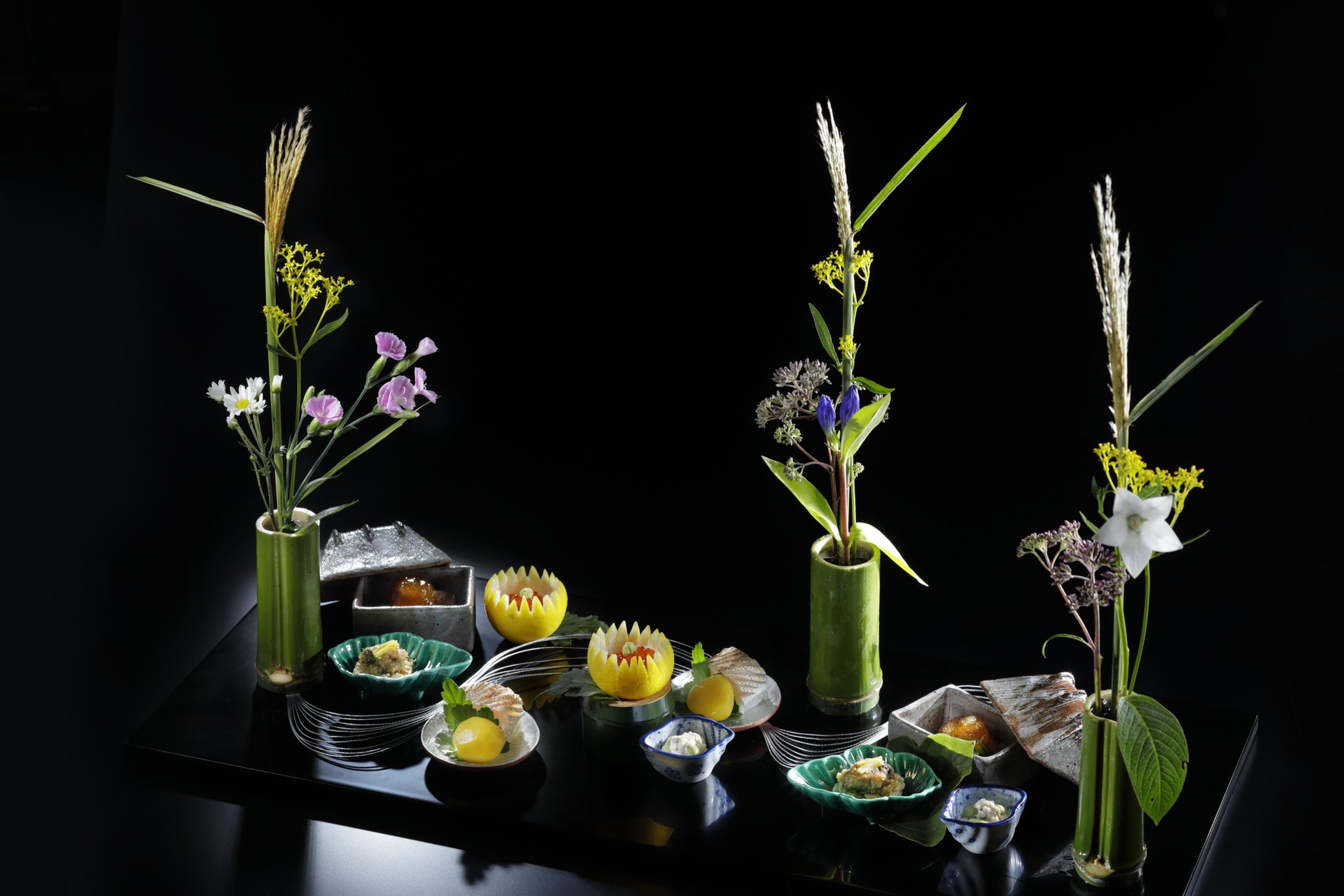 お食事は、京都老舗料亭で長年腕を振るってきた出張料理人による京都大原や日本各地からの食材を使用した、特別なお品書きの本格懐石料理をお召し上がりいただけます。
