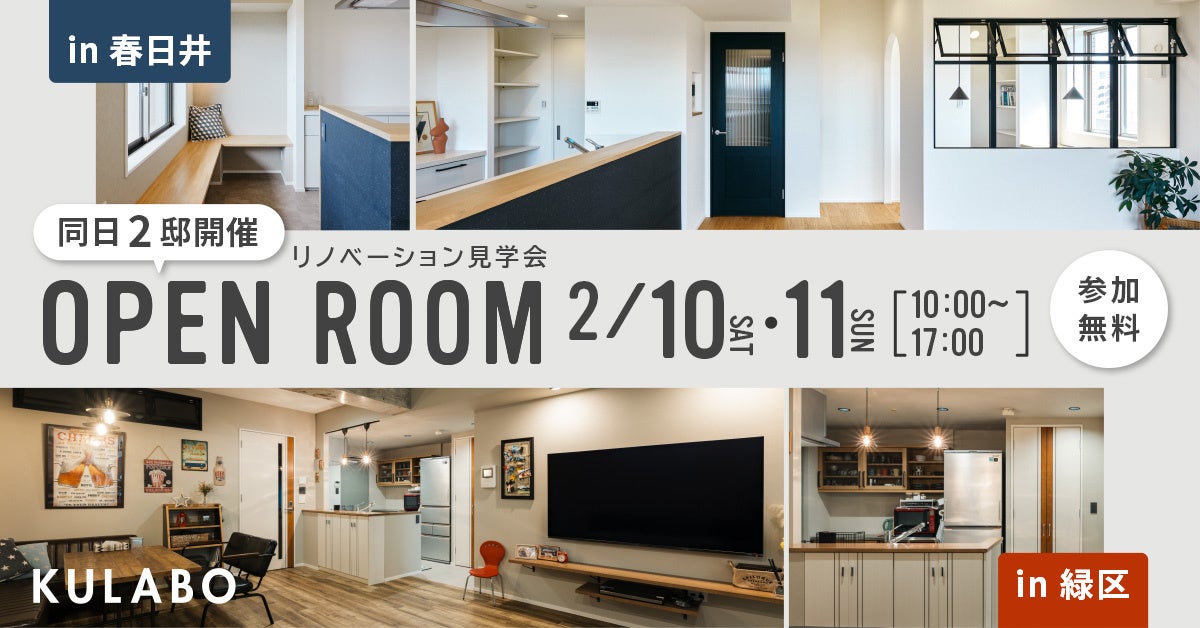 実際に見て体感!KULABOが「マンションリノベーション見学会」を2月10・11日に愛知県春日井市と名古屋市緑区の二会場で同時開催。