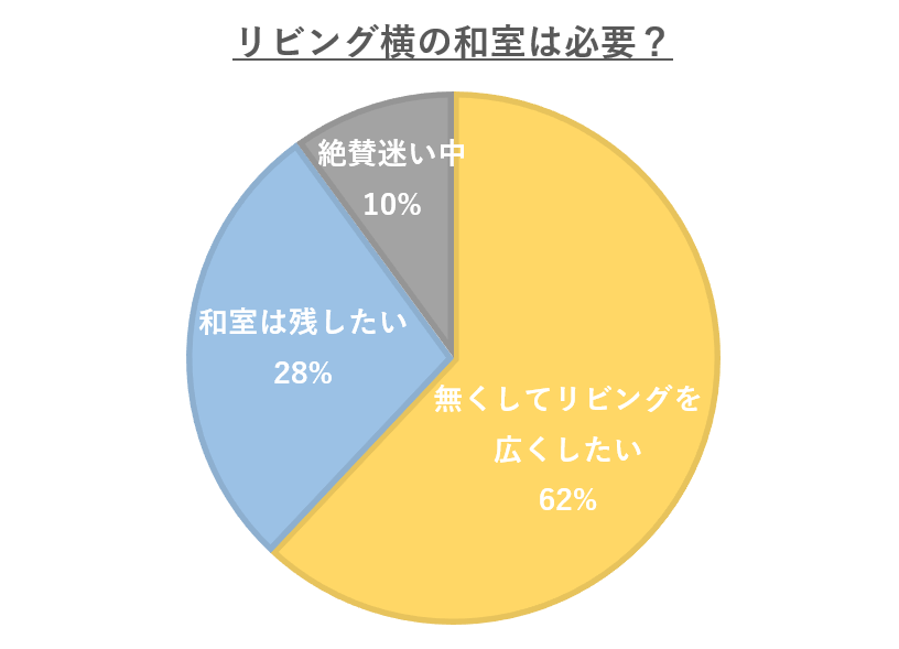 他方「和室を無くしてリビングを広くしたい」と回答した方は、全体の約60%でした!『空間を広く見せたい!』『家具も配置しやすく、部屋全体の統一感も生まれるから!』が人気を集めている理由のようです。