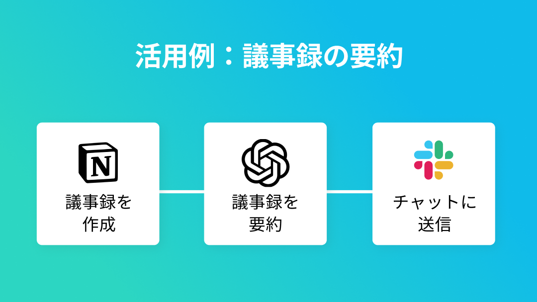 会議の議事録を自動的に要約し、チャットツールなどに送信します。