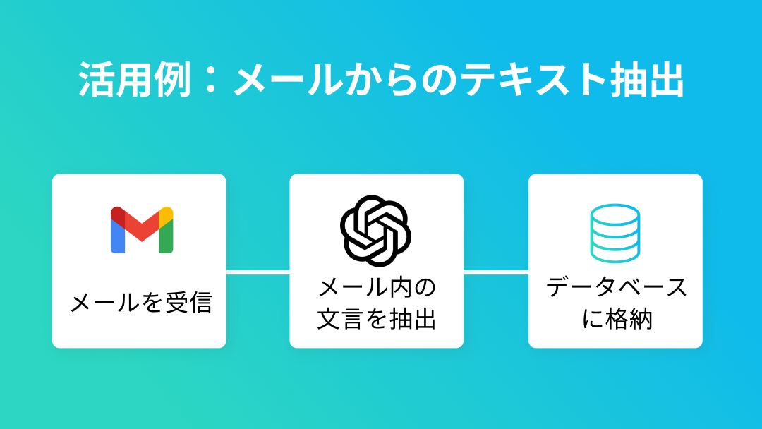 受信メールから自動的に名前や企業名、メールアドレス、部門情報などを抽出し、データベースに格納します。