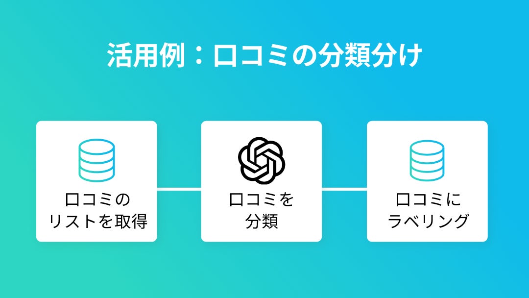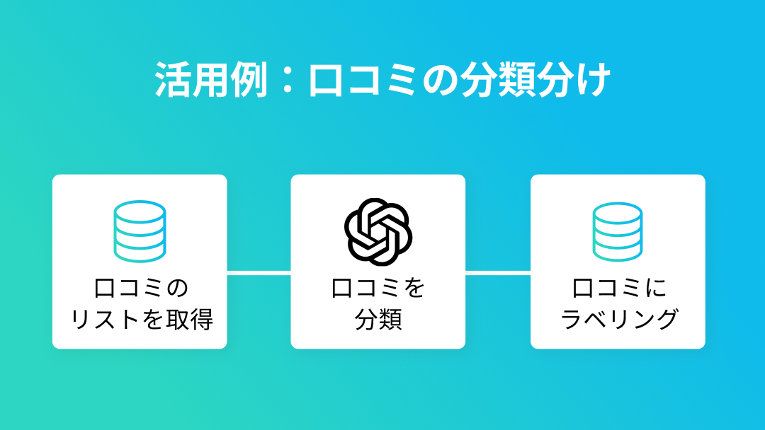 ユーザーからの口コミのリストに対して、ネガティブな口コミかポジティブな口コミかを判断し、自動的にラベリングします。