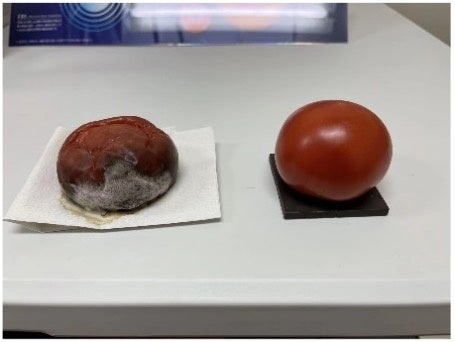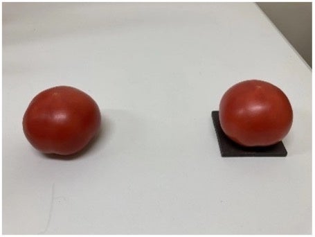 このテラヘルツ波を搭載することで、使うほどにお肌や頭皮も元気になるドライヤーを実現しました。 下記にトマトをテラヘルツ鉱石の上に置いたものと置かないもので実証を実施。