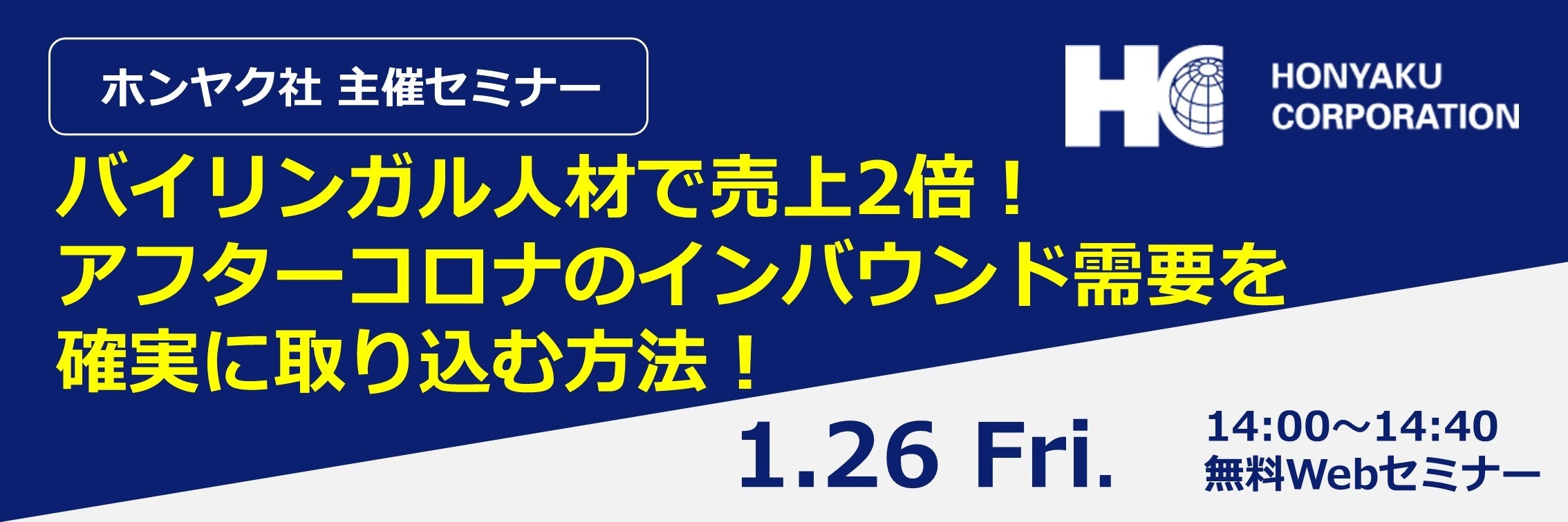 ホンヤク社主催Webセミナー『バイリンガル人材で売上2倍!アフターコロナのインバウンド需要を確実に取り込む方法!』2024年1月26日(金)開催
