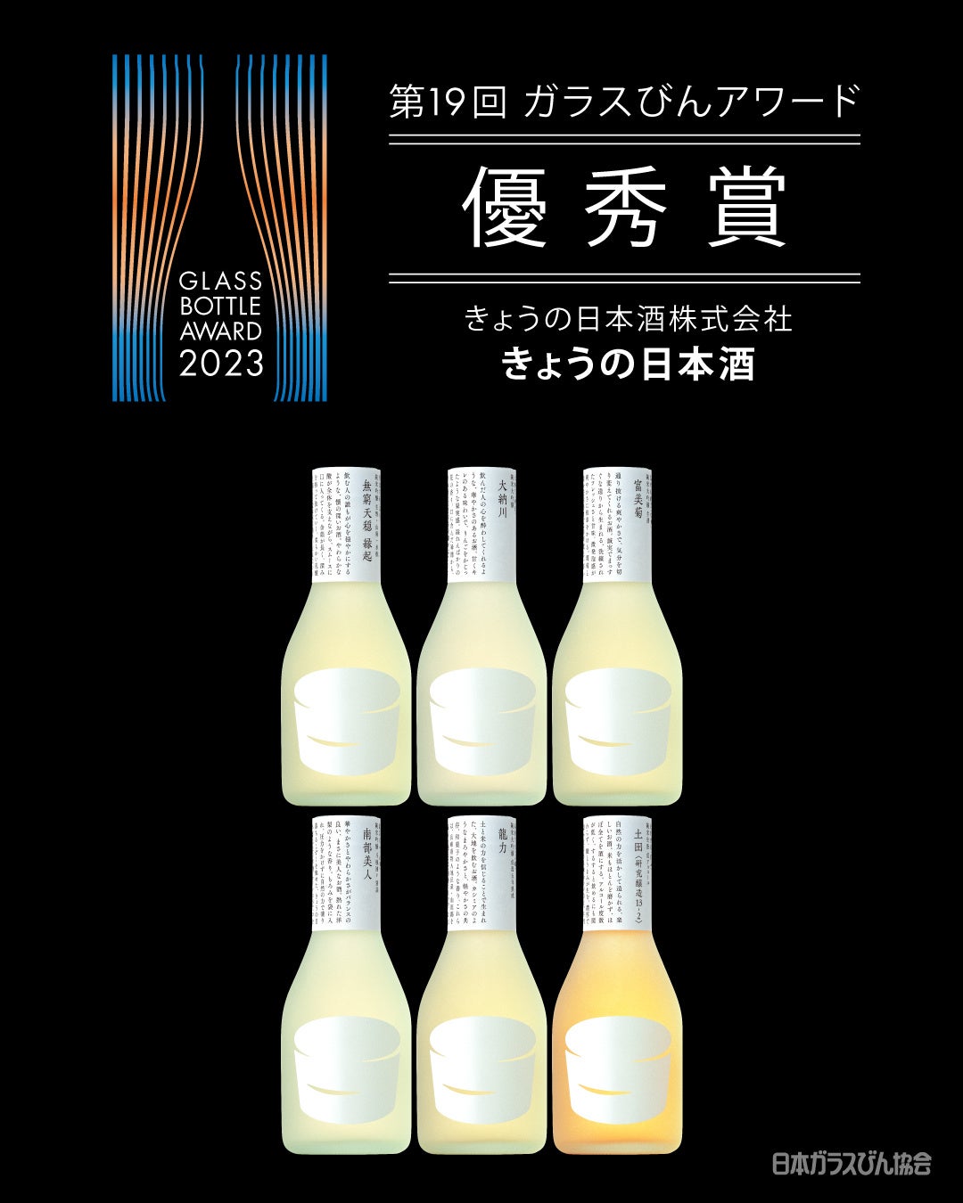 きょうの日本酒株式会社(本社:東京都港区、代表:濱道佐和子、以下「きょうの日本酒」)は、2022年に発売されたガラスびん商品の中から優れたガラスびん商品を表彰する「第19回 ガラスびんアワード2023」(主催:日本ガラスびん協会)にて、すりガラスが醸し出す高級感のある雰囲気や一合瓶のサイズ感、酒読のコンセプトなどが高く評価され、全208エントリー(251本)の中から優秀賞を受賞致しました。