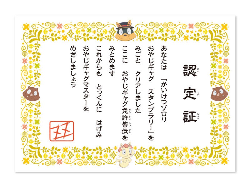 | 【注意事項】 ※スタンプ台紙はアカウント1つにつき、原則1枚のお渡しとなります。 ※スタンプラリーへの参加は、おひとり様1回限り。 ※かいけつゾロリオリジナル「認定証」、「ポストカード」のお渡しはスタンプラリー開催期間のみとなります。 ※ポストカードのイラストは、お好きなものを1枚お選びいただけます。 ※かいけつゾロリ「オリジナル「ポストカード」のイラストは、先着順となり、なくなり次第終了となります。 あらかじめご了承ください。 ※日程・内容は予告なく変更となる場合がございます。あらかじめご了承ください。 |