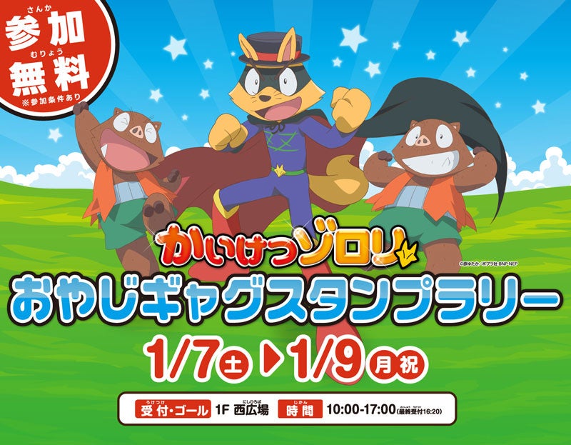 2023年1月7日(土)~1月9日(月・祝)の期間に、国民的児童書である「かいけつゾロリ」シリーズ(作・絵:原ゆたか/ポプラ社刊)とタイアップしたイベント『かいけつゾロリ おやじギャグスタンプラリー』を開催いたします。