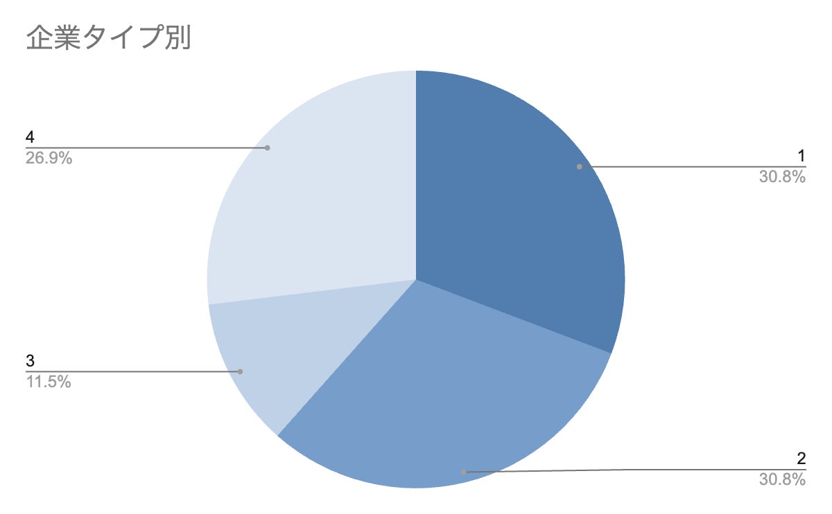◾️タイプ3が最も少なく、タイプ1、2、4は同じ割合となっている。