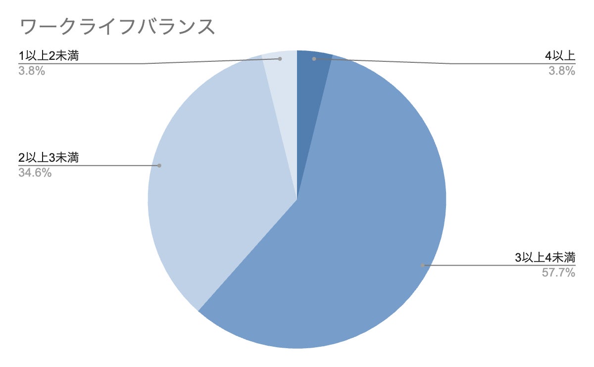 ◾️ワークライフバランスの指標が3以上4未満の企業が最も多く、IT企業は柔軟に働きやすい制度が整っていることがわかる