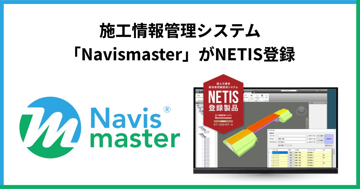 応用技術株式会社(本社:大阪市北区、代表取締役社長:船橋 俊郎、以下 「応用技術」)は、施工情報管理システム「Navismaster」が、国土交通省の新技術情報提供システム(NETIS)に登録されましたことをお知らせいたします。