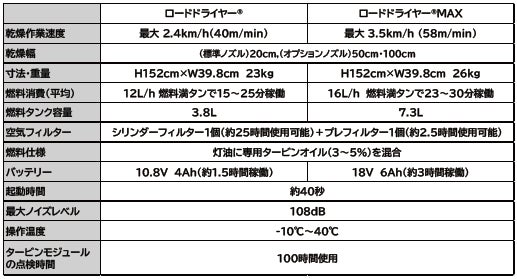 今回発売した『ロードドライヤー®MAX』は、「ロードドライヤー®」から性能が向上しており、乾燥作業速度が最大 40m/min から、58m/min に向上し、作業時間を更に短縮することが可能となりました。