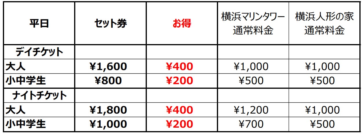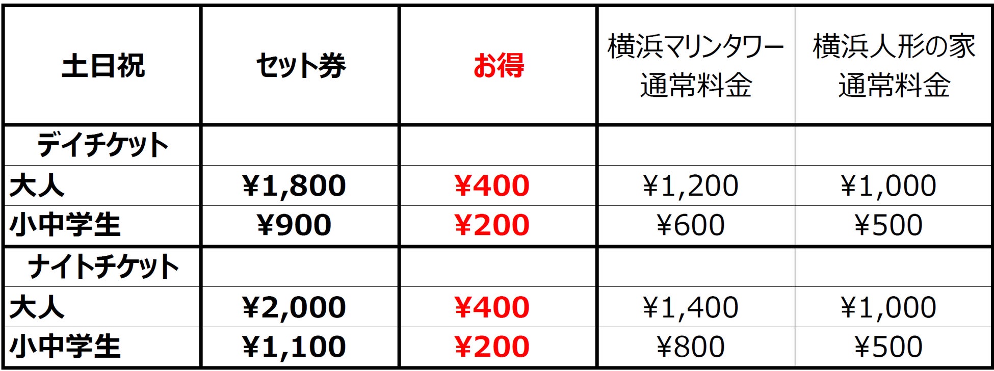 ※横浜マリンタワーでの、共通チケット販売は午後4時まで(横浜人形の家最終入場 午後4時30分)となります。