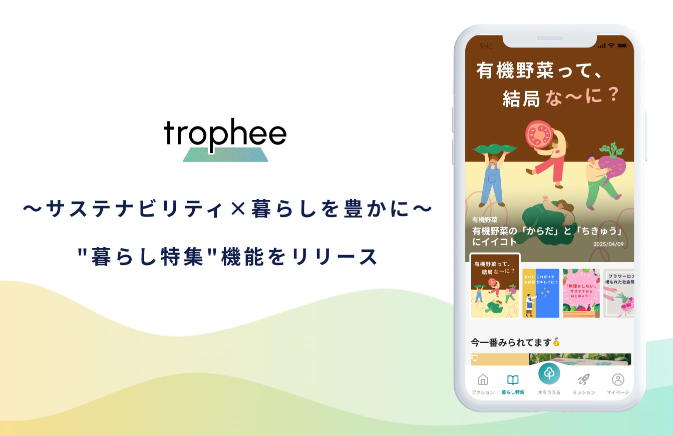 サステナビリティ関連サービスをtoC/toB両面で展開する株式会社STACTs (代表取締役CEO:滝島 大貴、Co-Founder 取締役COO:吉種 貴彦)が提供する、実践型サステナビリティプラットフォーム「trophee」は、”サステナビリティx暮らしを豊かに”をテーマとする情報メディア 「暮らし特集」を、2025年4月15日より、新機能として追加いたしましたのでお知らせいたします。