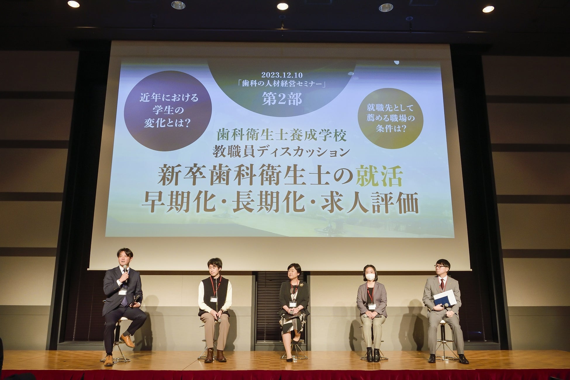 ご登壇いただいたのはいずれも、決して「立地が良い」とは言えない条件の中で、継続的に歯科衛生士の採用に成功している歯科医院の経営者である先生方。