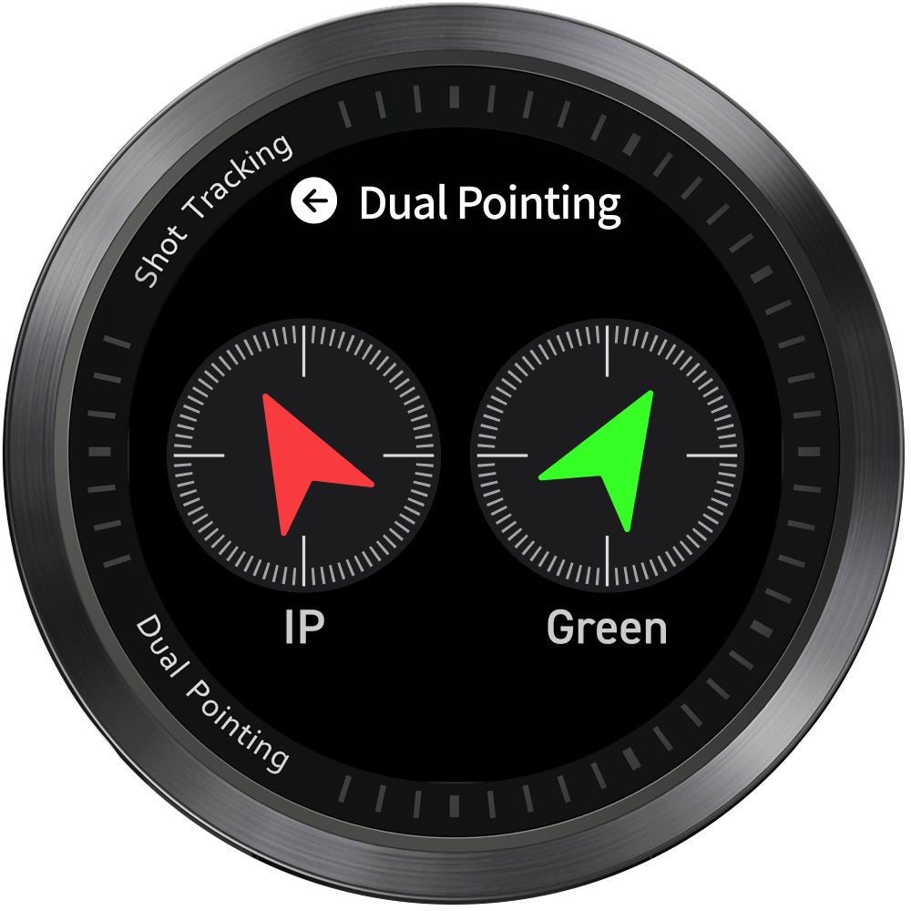 AIが「推定目標地点(IP)」と「グリーンセンター」を同時に案内し、打つ方向を案内してくれます。
